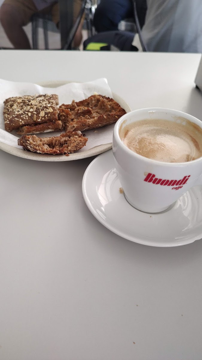 Wonderful coffee and pastries. They brought a small plate of extra pastries to everyone sitting and drinking coffee. Even though it's in the middle of an apartment block the atmosphere is fabulous because of the staff.